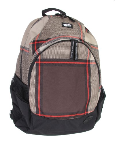 Vans Van Doren, The roomy Van Doren is a simple but perfectly designed backpack that finds favor with both those who are going to school, and those who are going out for an all-day skate session. Outside is a bold herringbone pattern-inlayed plaid print, and inside is a roomy main compartment. It also features a front pocket with an internal organizer, handy side mesh pockets, and comfortable shoulder straps. Made of sturdy 100% cotton canvas.